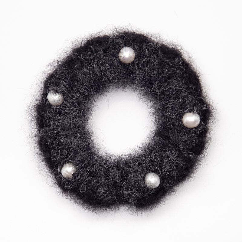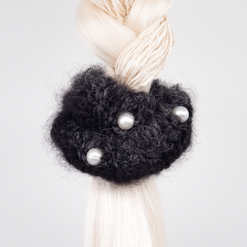 Grundmaterial – Alpaka. Verbindung aus weissen Perlen mit schwarzer Alpakawolle – stets ein zeitloser Klassiker.